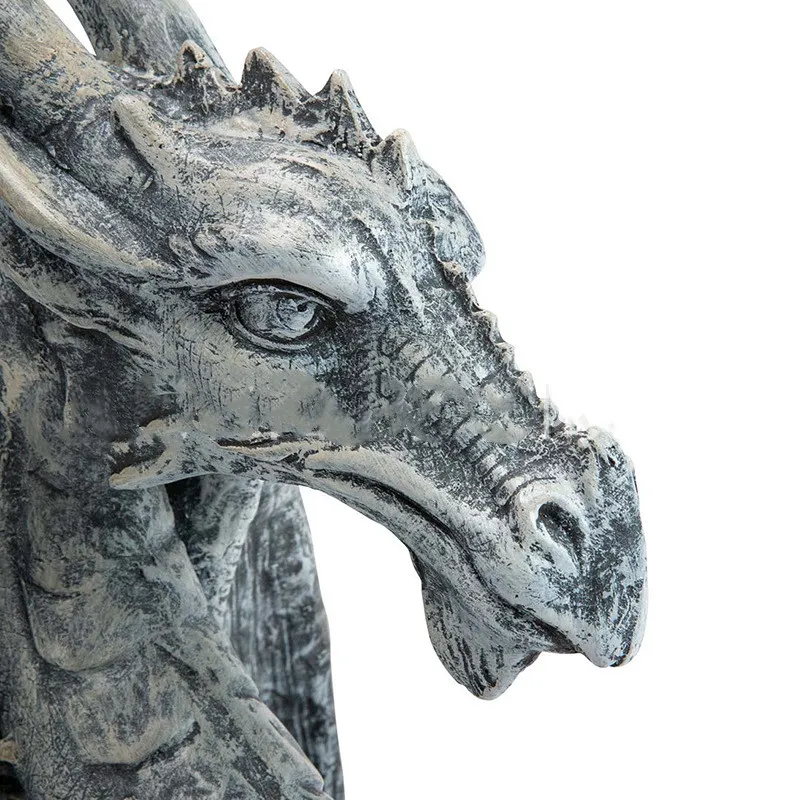 Crafted from high-quality resin, this dragon statue is built to withstand the elements while maintaining its beauty over time. Resin is a popular material for outdoor sculptures because it is lightweight, durable, and resistant to the harsh effects of weather, such as rain, sunlight, and wind. This ensures that your dragon ornament will remain a stunning addition to your garden, year after year, without fading or deteriorating. The resin construction also allows for fine details and a smooth finish, giving the statue a polished and realistic appearance.
