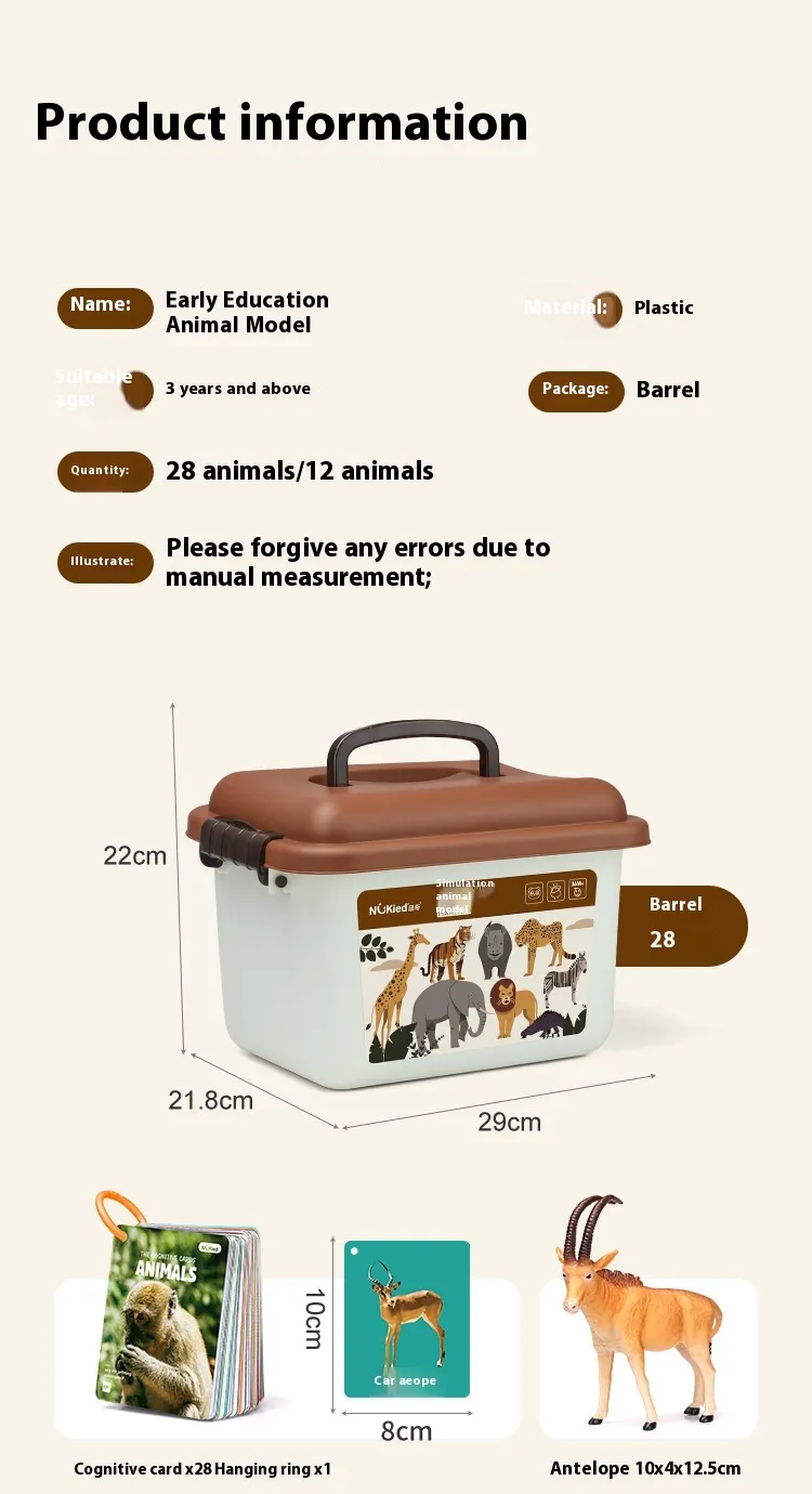 Color: 12 early education animal models-bucket (give 12 cognitive cards) 803,28 early education animal models-bucket (give 28 cognitive