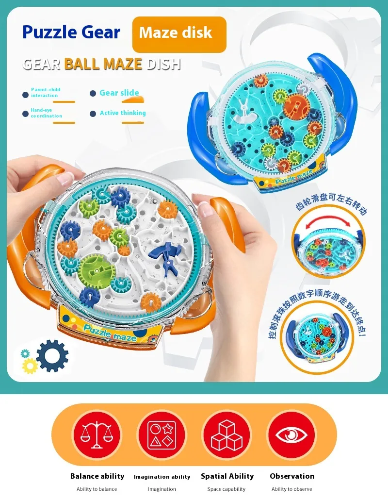 The Educational Gear Maze Entrance Intellectual Ball Concentration Training Toy is a captivating handheld puzzle designed to enhance children's cognitive abilities, fine motor skills, and concentration. This interactive toy features a 3D maze embedded within a transparent sphere, where players guide a small ball through intricate pathways using tilting and rotating motions. As children navigate the maze, they develop problem-solving skills, spatial awareness, and patience, all while enjoying a fun and engaging activity.​
