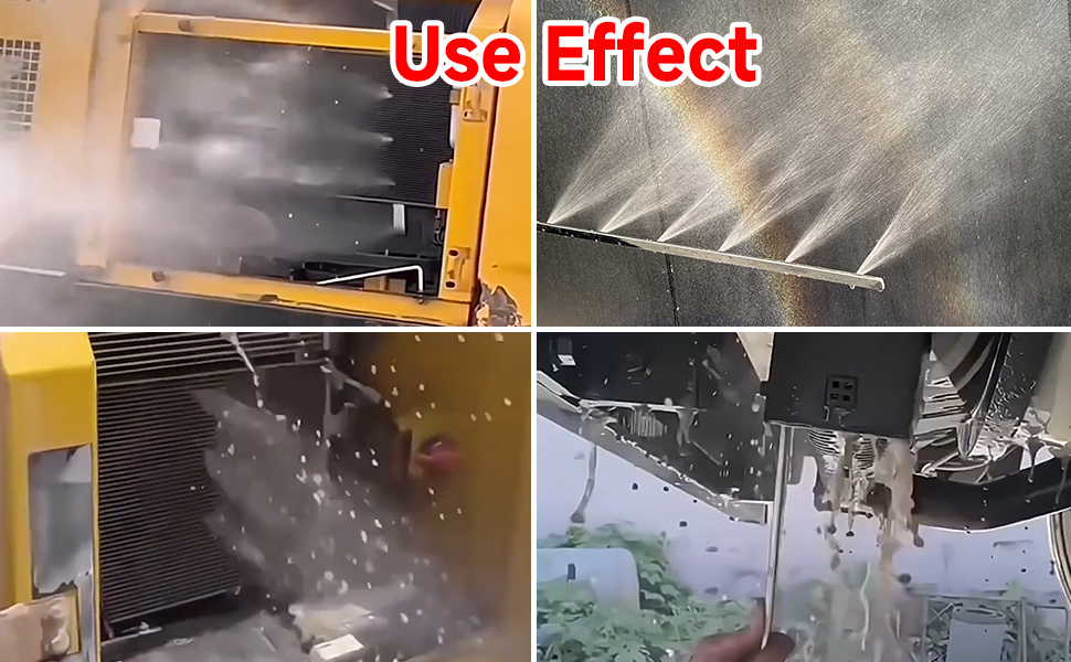 - 2️⃣ [Embedded 25° Fan Spray Nozzles]: Equipped with six recessed fan-shaped nozzles delivering a wide 25° spray pattern. Ensures even water distribution and powerful flushing—perfect for removing mud, bugs, and debris from radiators, condensers, undercarriages, and tight engine bays.