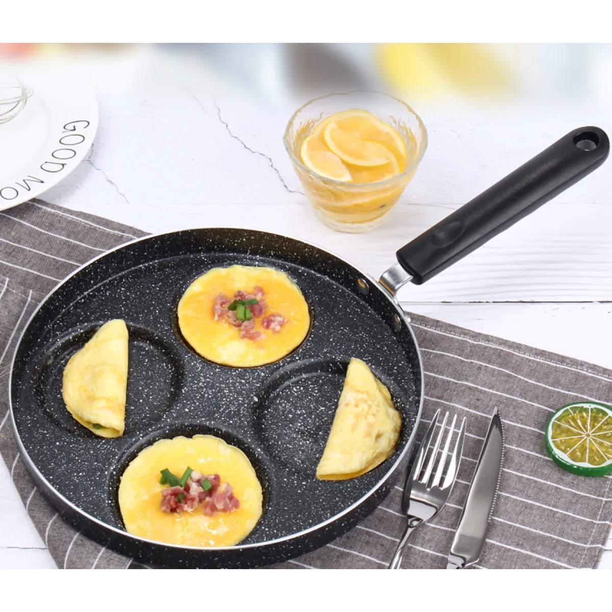 Non-Stick Surface: The non-stick coating allows for easy cooking and cleanup, preventing eggs from sticking to the pan,