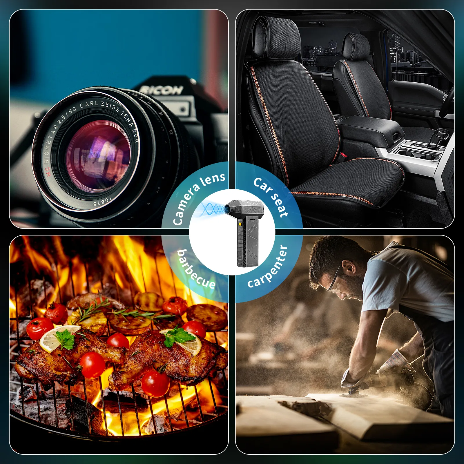 Equipped with adjustable airflow settings, you can control the intensity of the air jet, making it perfect for a variety of tasks – from gently cleaning delicate keyboards and electronics to blasting dust out of car vents and tight crevices. Its lightweight, portable design allows for easy maneuverability and usage both indoors and outdoors. The ergonomic grip ensures comfortable handling, making it simple to clean various items and areas around the house, car, or office.