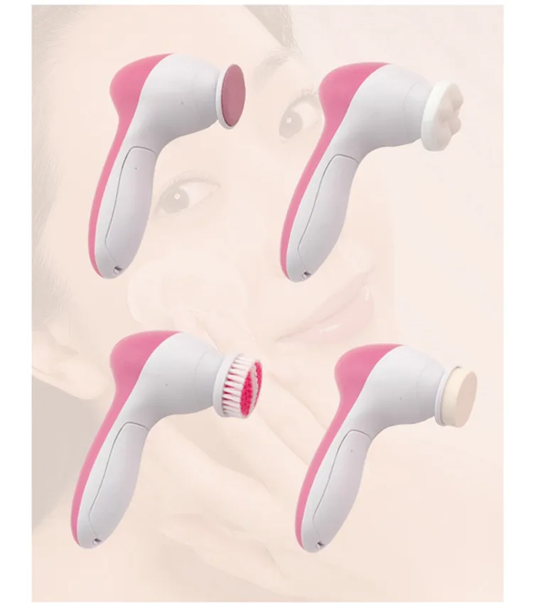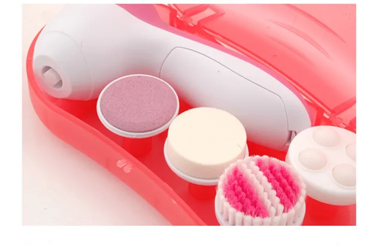 2. Exfoliate dead skin cells to reveal radiant and youthful skin3. Reduce and erase fine lines & blackheads4. Compact and light-weight5. 2 settings: “Low” for daily cleaning, “High” for exfoliation6. Color: Pinks7. 5 attachments included:soft brush, Rolling massager, make-up sponge, Latex sponge-soft, Crude Polish accessory