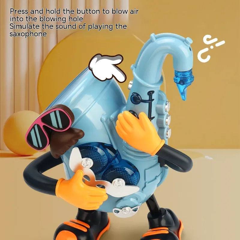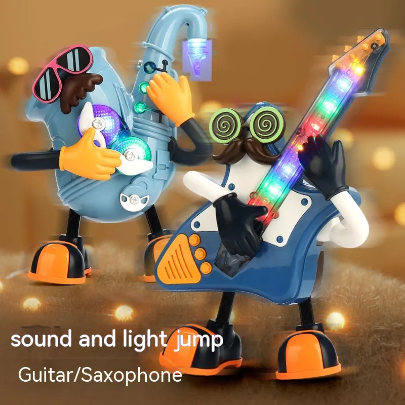 Electric Dancing Mr Rock & Roll Music Light Swing Saxophone Guitar Dancing Robot Toy
