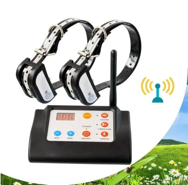 Pet fence system with 2 in 1 function:Â LED display, pet wireless fence and remote control sound vibration shock
