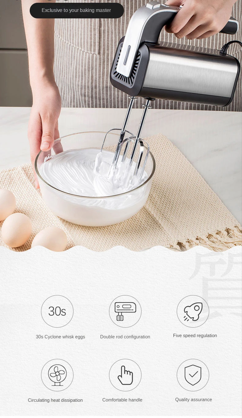 Electric Egg Beater - Stainless Steel Mini Whipped Cream and Flour Mixer