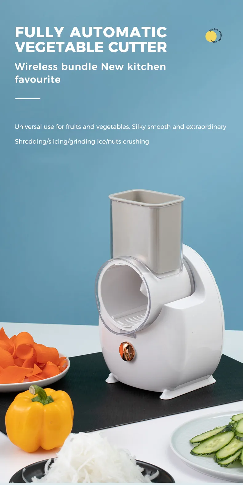 Safe and Easy to Use: Designed for convenience and safety, the electric grater features non-slip feet and simple controls,