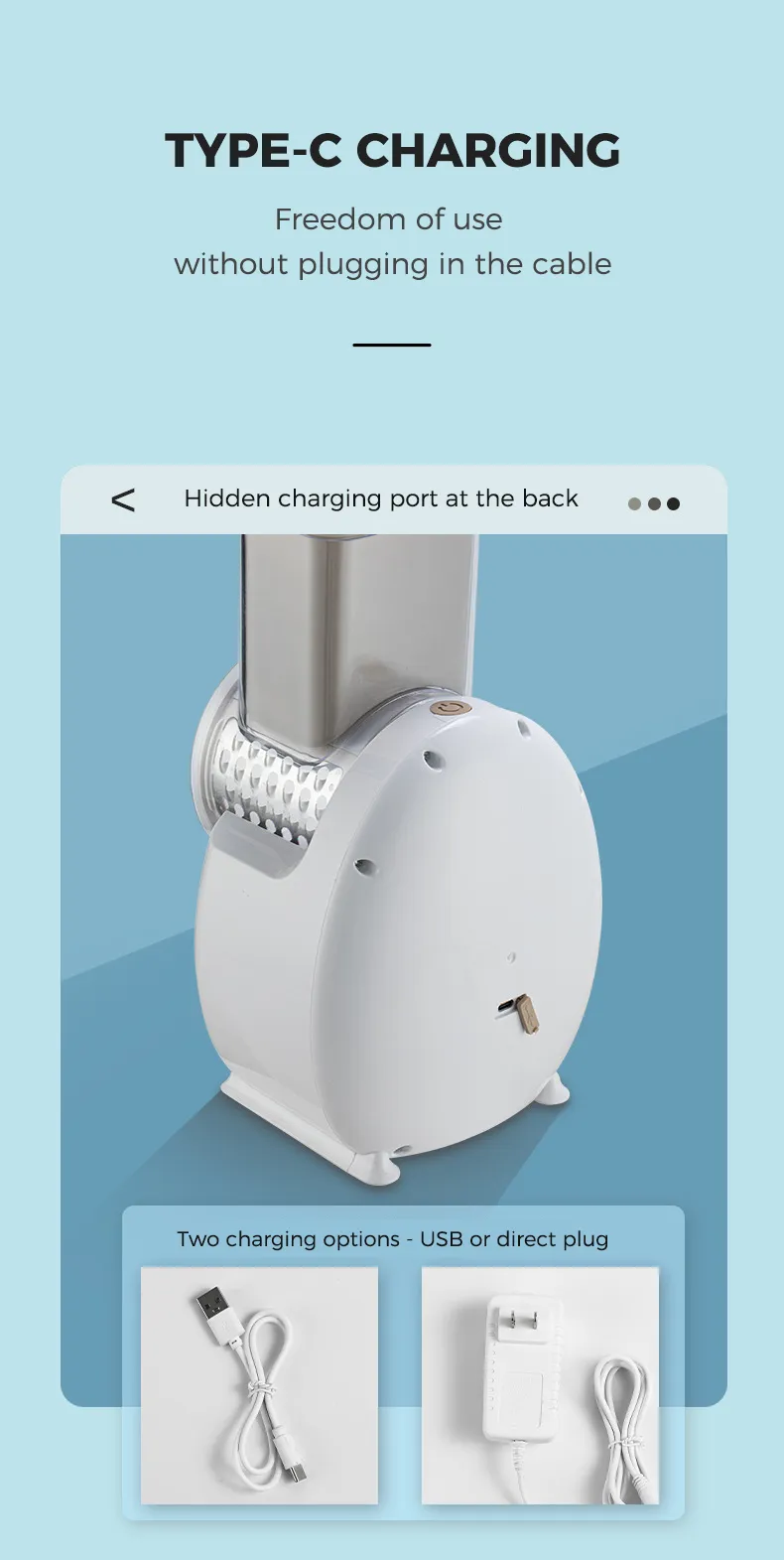 Compact and Easy to Store: Despite its powerful motor, the compact design allows you to store the electric grater easily