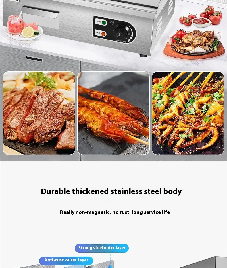 Prepare delicious grilled dishes or noodle sheets efficiently, catering to large crowds with ease.