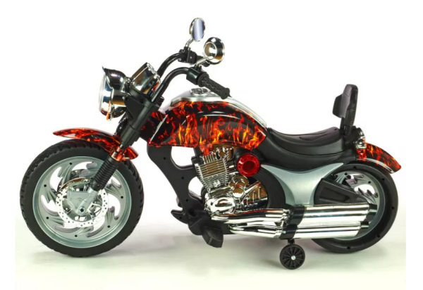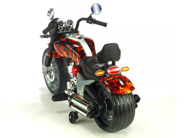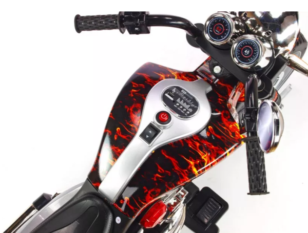 - The Electric Kids Ride-On Chopper Motorbike features a classic chopper design, complete with detailed engine graphics, a sleek seat, and wide handlebars. This attention to detail provides an authentic riding experience for your little one.
