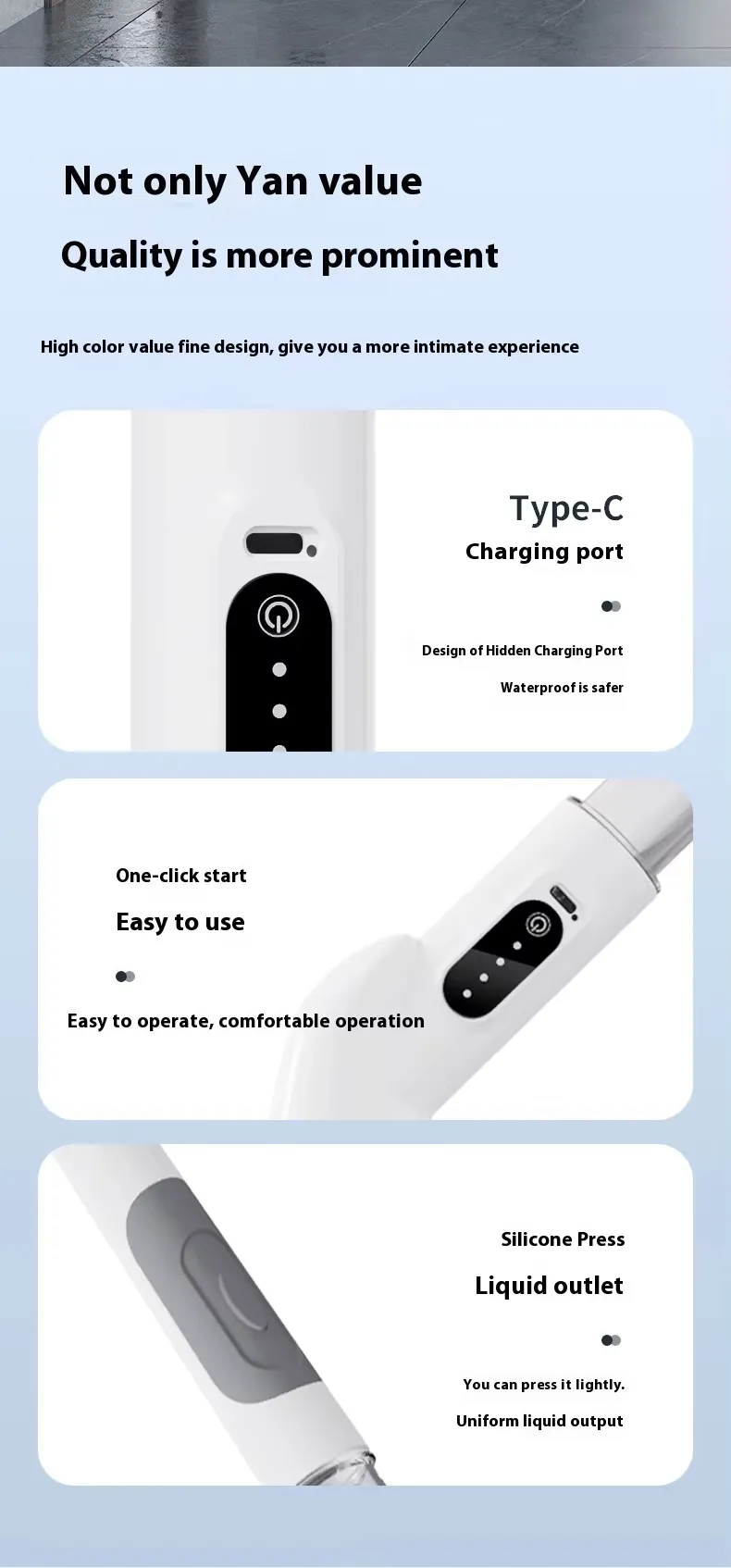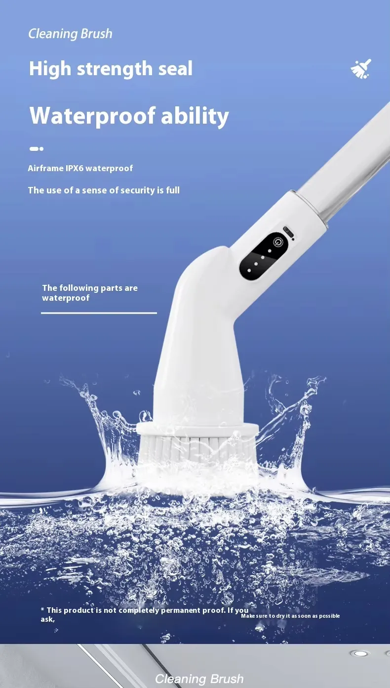 The handle is designed for a comfortable grip, reducing fatigue during extended cleaning sessions. Its waterproof construction ensures safe use in wet environments like bathrooms and kitchens.