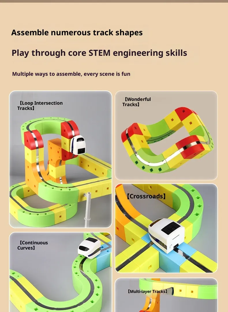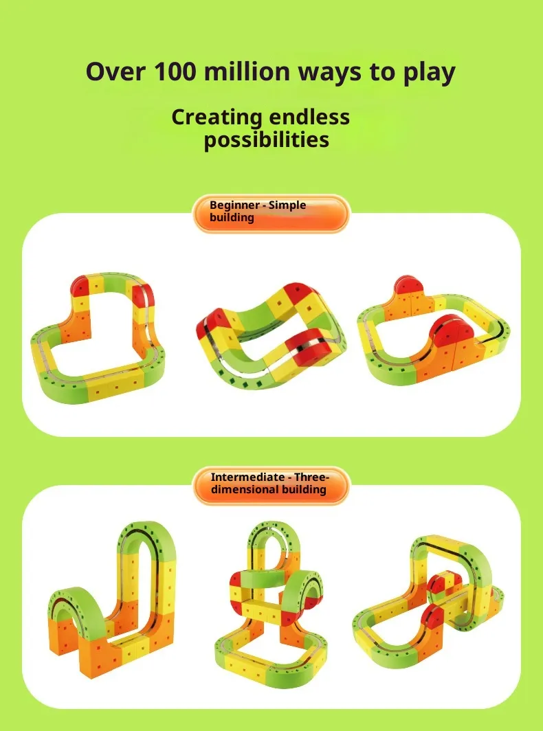 Because the track system is modular and open‑ended, every layout represents a unique expression of the child’s creativity and thought process. This freedom fosters storytelling, spatial planning, scenario creation, and imaginative exploration that extend far beyond simple construction.