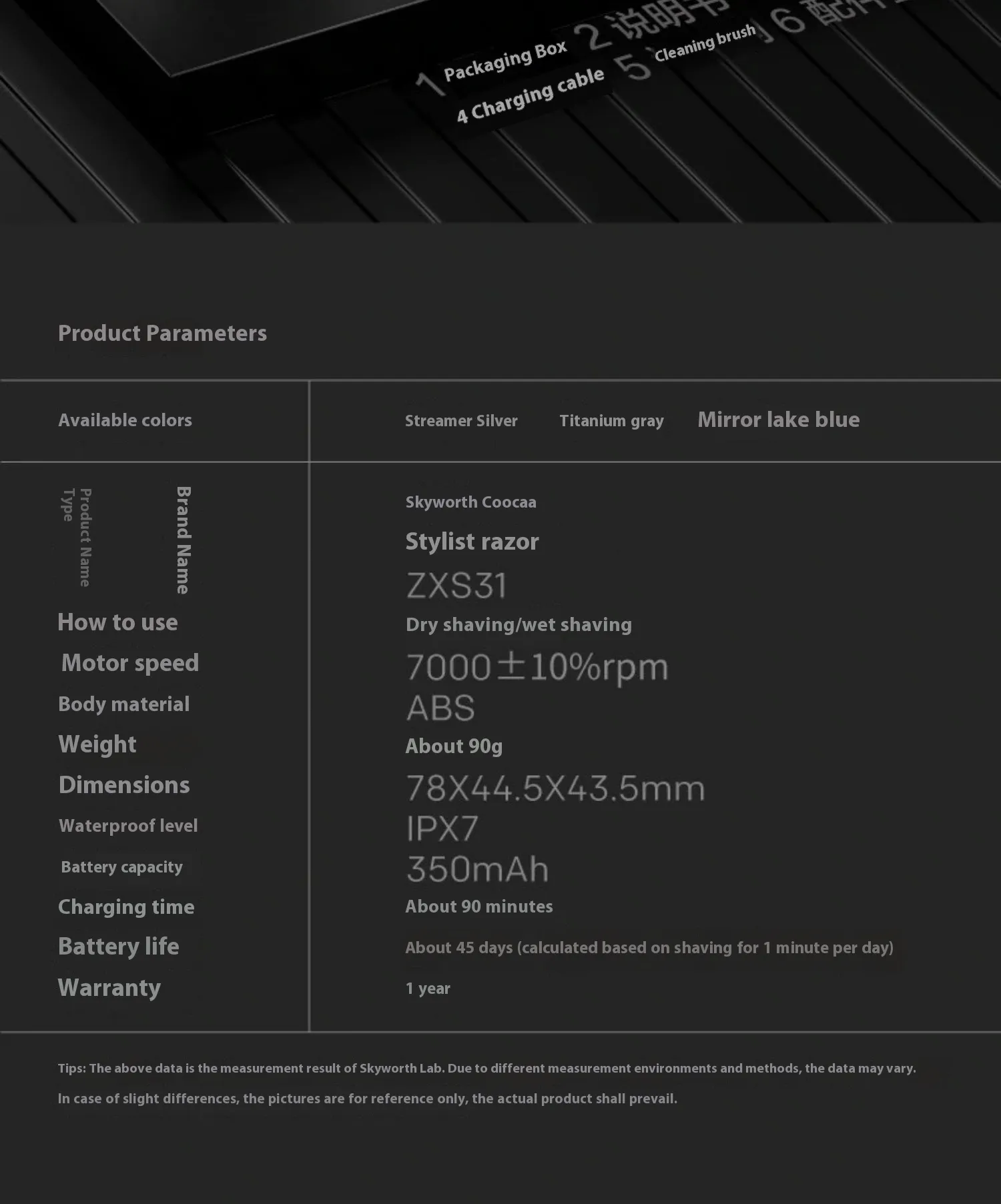 Shaver, data cable, instruction manual * 1 set