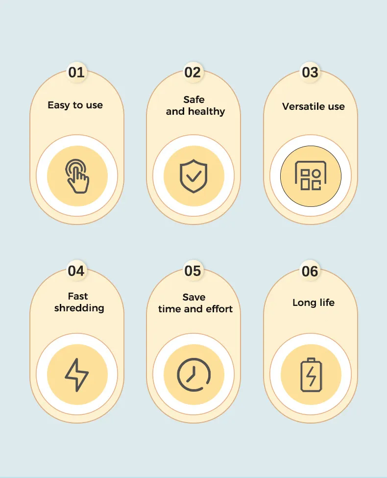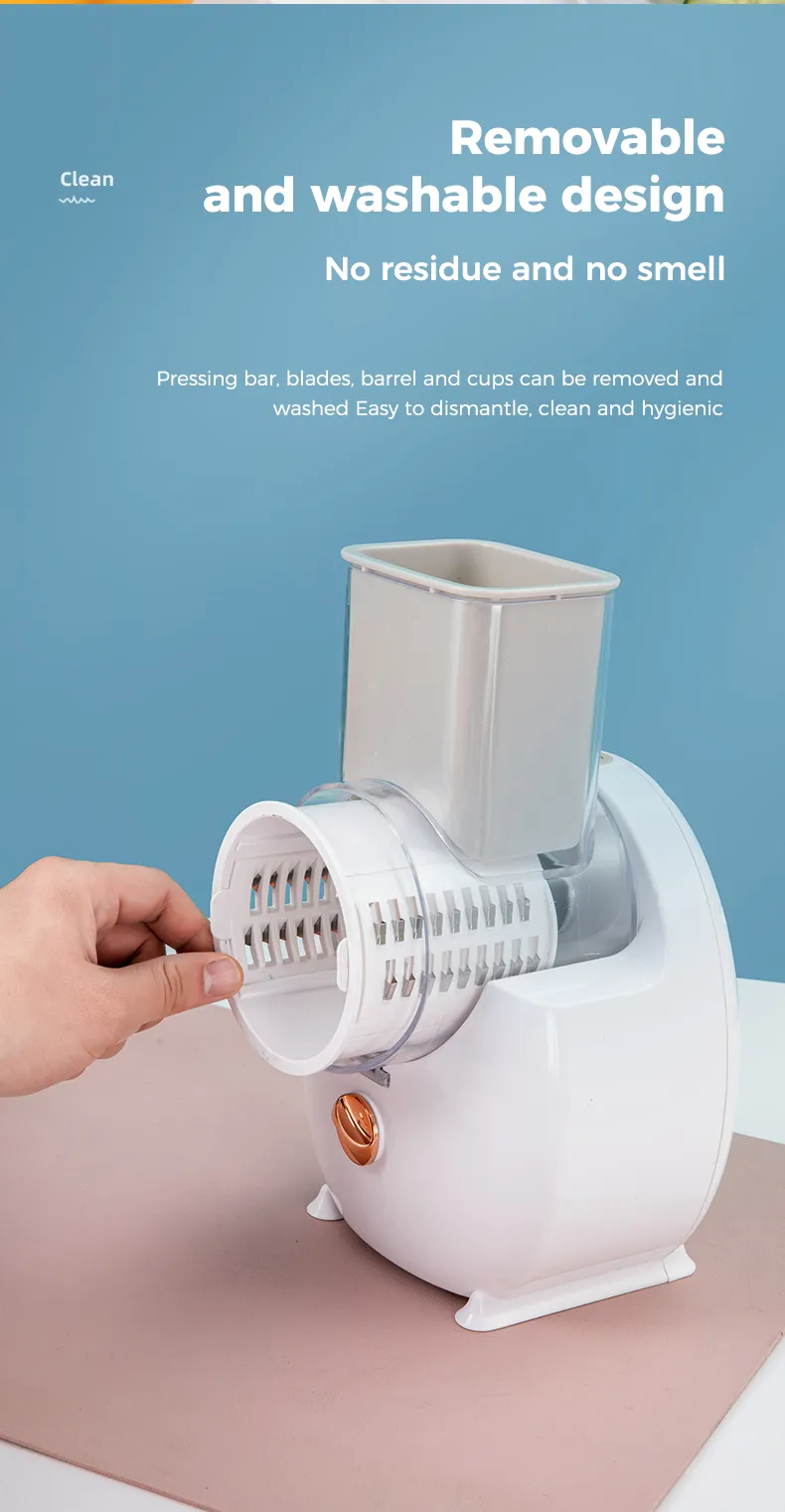 1. Efficient Rotary Grater: One-click automatic cutting for quick preparation and higher efficiency.