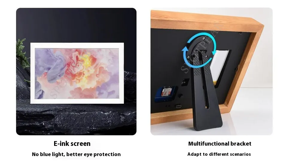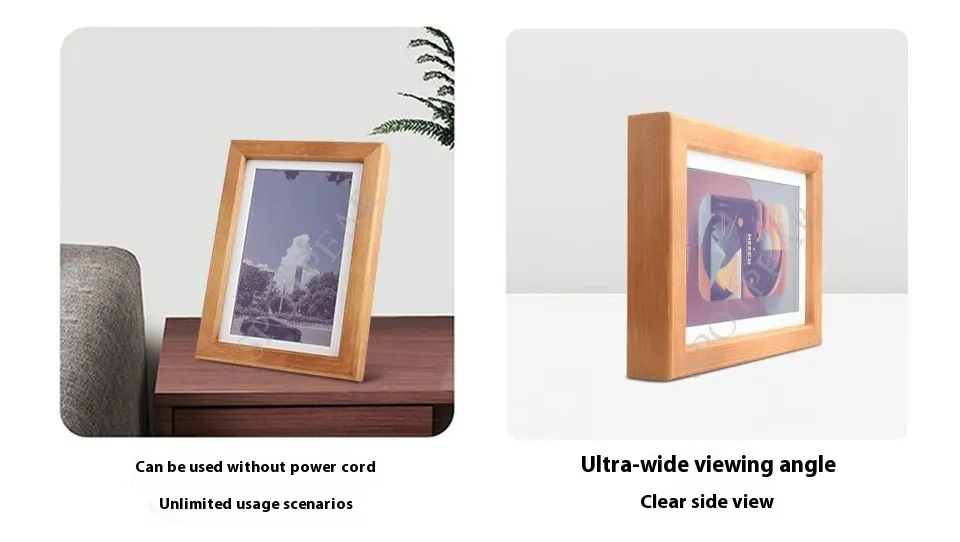 Whether you're an art enthusiast, a parent displaying family memories, or someone who wants to add a personal touch to your workspace, this E-Ink digital photo frame offers a unique, customizable way to bring your images to life. Its energy-efficient design and color capabilities make it an attractive and practical addition to any room, whether in your living room, office, or bedroom.