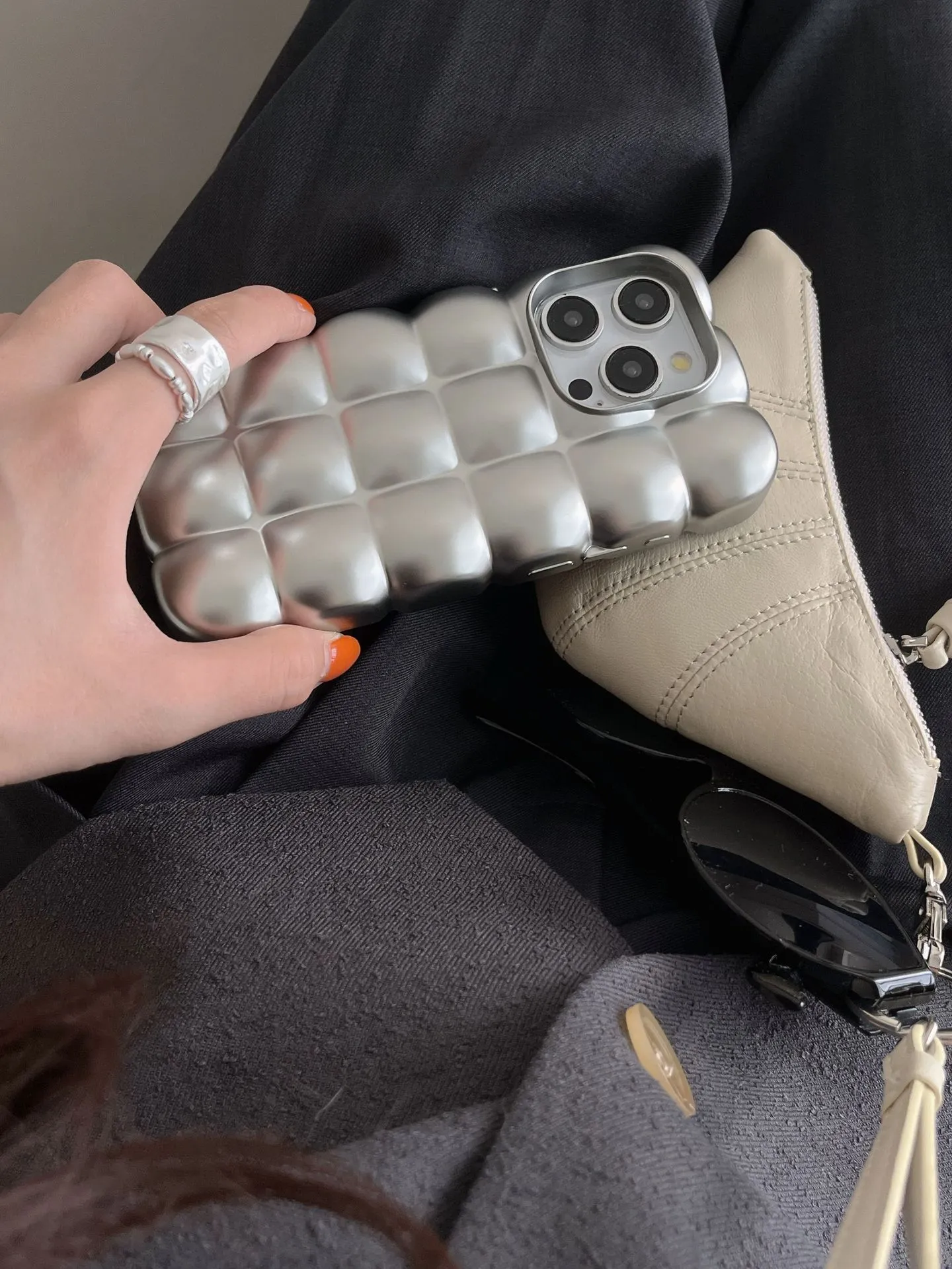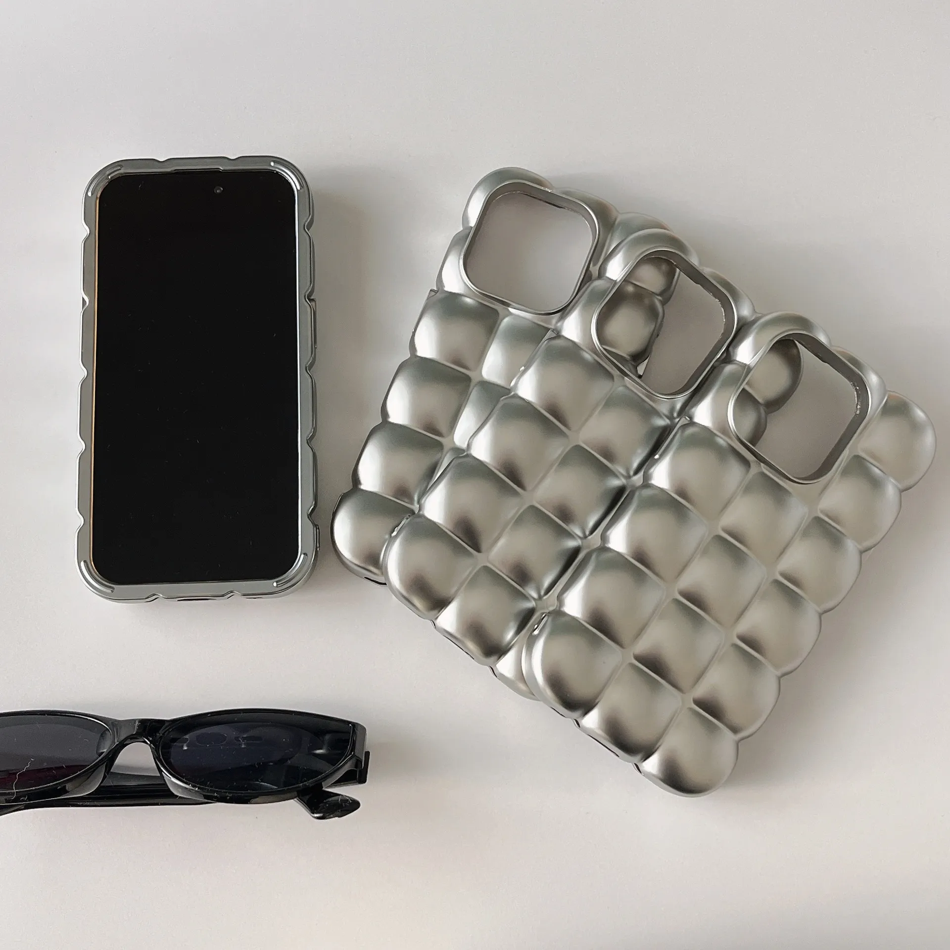 Electroplating Egg Waffle Matte Silver Phone Case