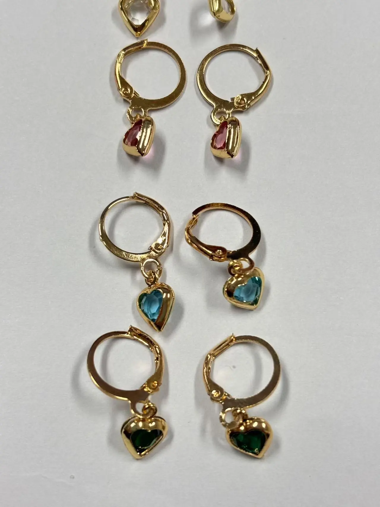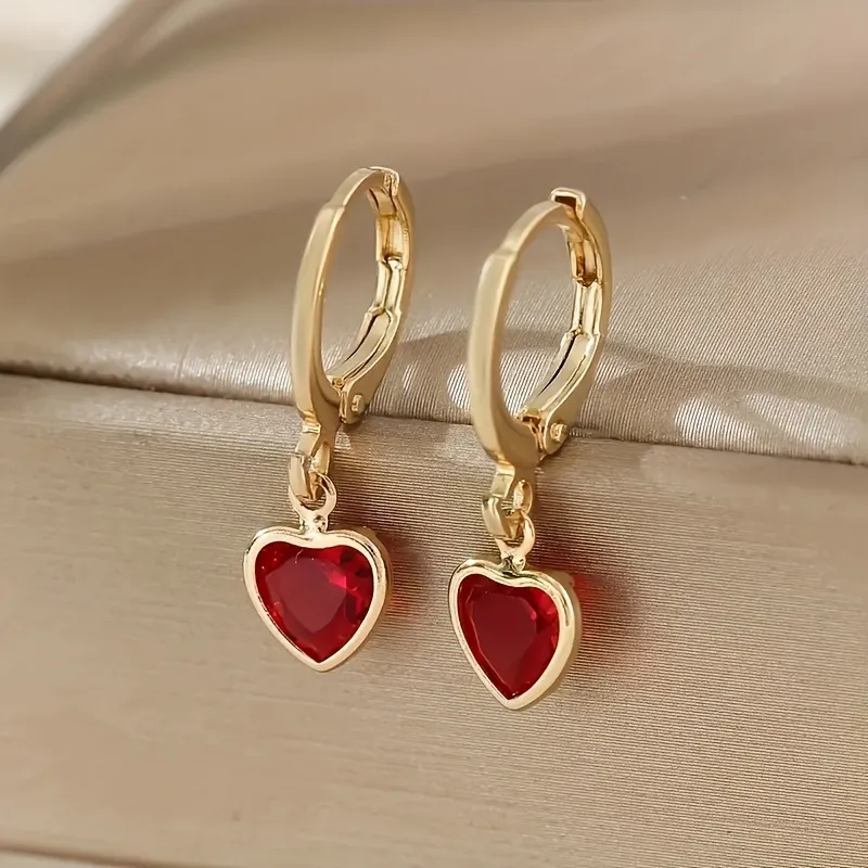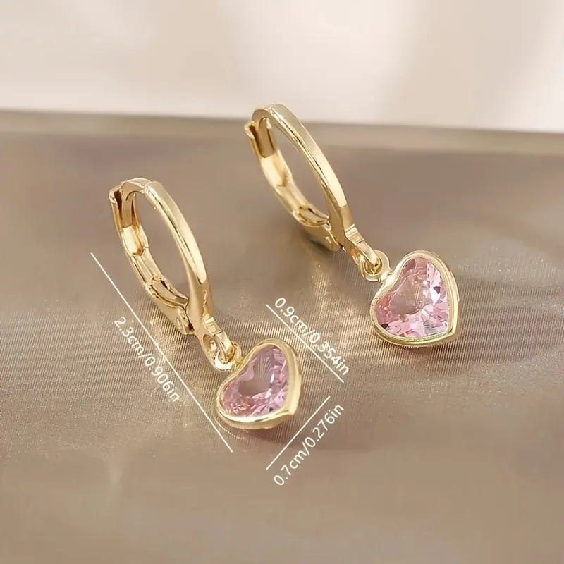 Featuring heart-shaped zircon stones in vibrant colors, these earrings capture light beautifully, offering a brilliant sparkle that enhances any outfit.