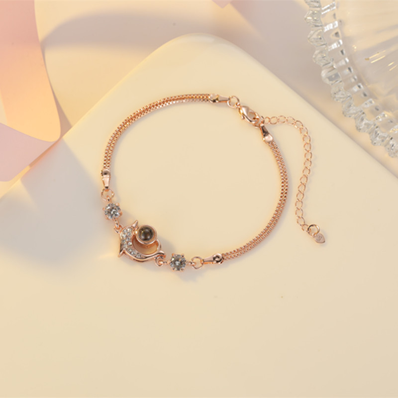 - Design: The bracelet features a delicate crescent moon charm, symbolizing femininity and mystery, complemented by sparkling crystal accents.