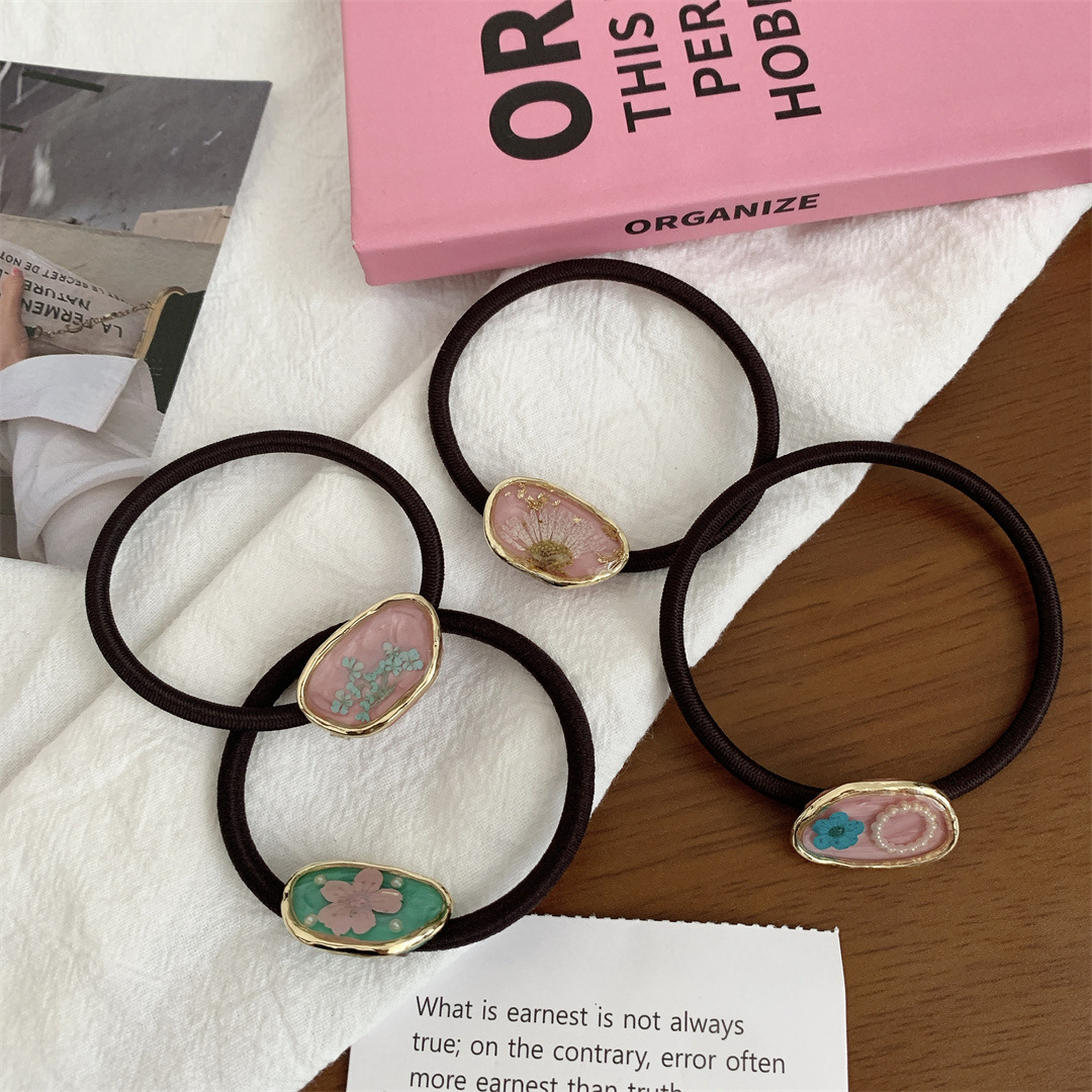 Each gemstone in the set adds a sophisticated touch to your ensemble. The collection includes a variety of colors, such as elegant green, soft pink, warm beige, and a delightful multicolor option, allowing you to choose a hair tie that matches your outfit or mood. The gemstones' polished finish and subtle sparkle enhance their visual appeal, making them a versatile accessory for any occasion.
