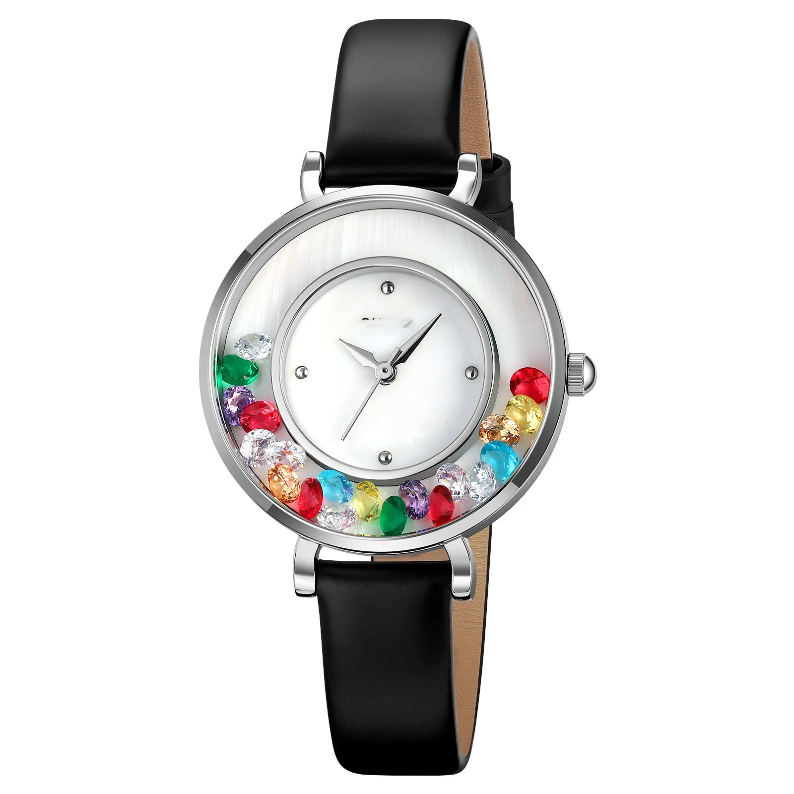 The gemstone ball accents around the dial add a touch of glamour and elegance to the watch, making it an eye-catching piece that stands out in any setting. The gemstones sparkle beautifully in different lighting, giving the watch a luxurious, refined look.