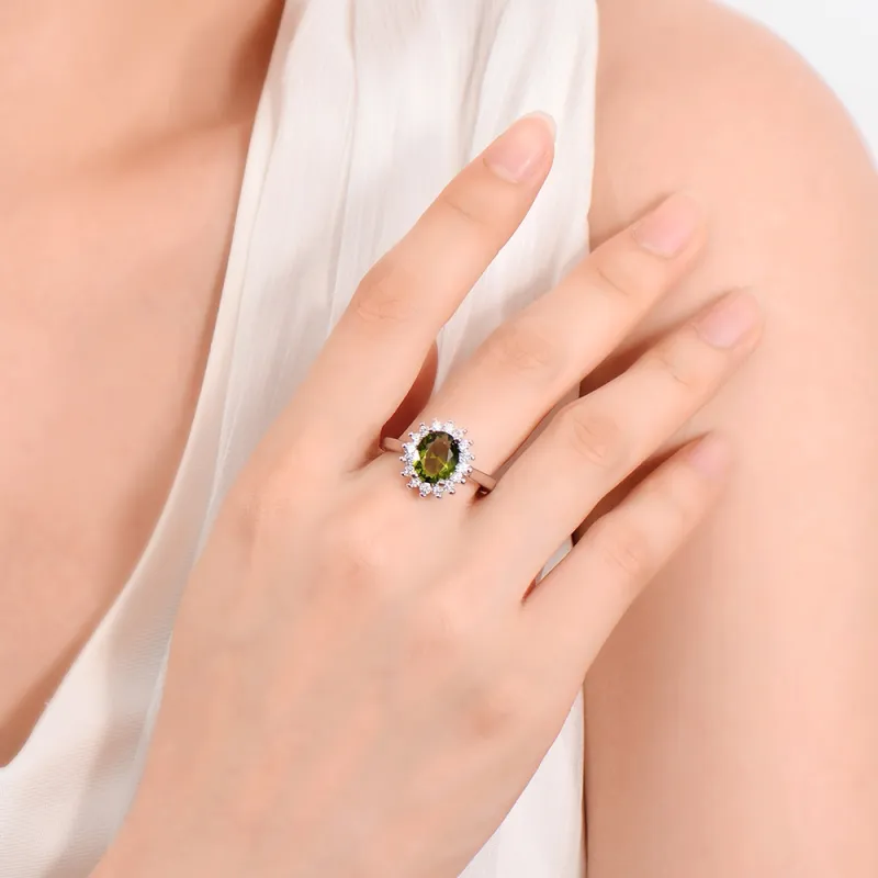 - Striking Sunflower Design: Features a dazzling oval zircon centerpiece surrounded by a halo of sparkling stones.