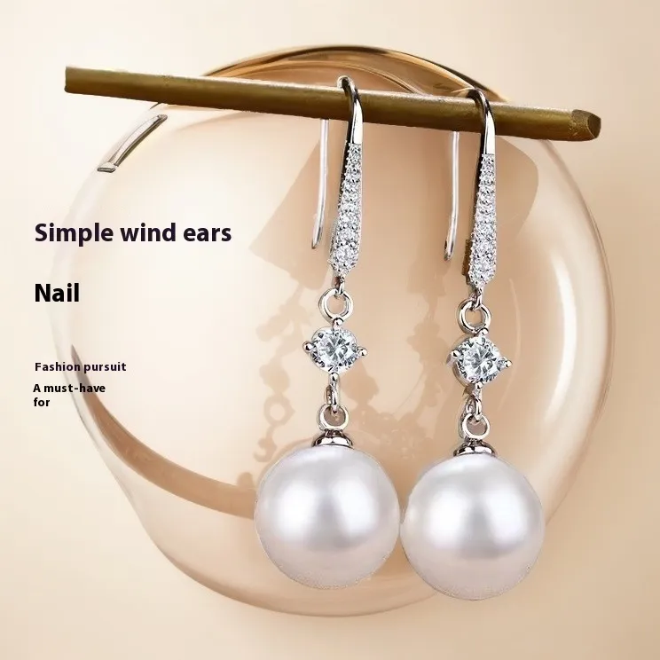Elegant Pearl Drop Earrings with Zircon Accents Slimming Gold Fashion Jewelry