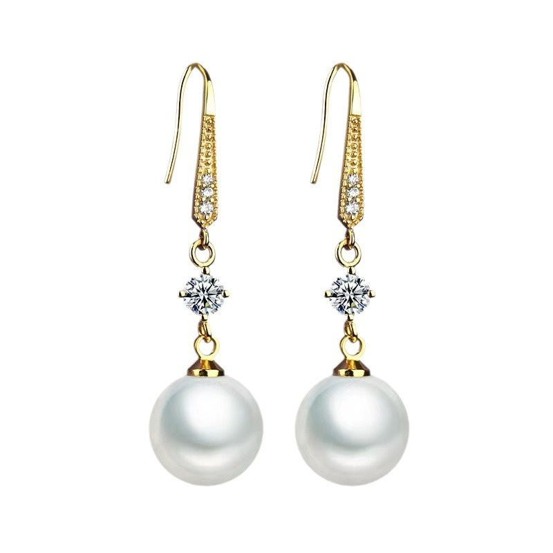These Elegant Pearl Drop Earrings are versatile enough to be worn with a variety of outfits, from casual daywear to elegant evening gowns. Whether you're dressing up for a wedding, a cocktail party, or a romantic dinner, these earrings will add a refined touch to your ensemble. Their understated elegance makes them suitable for office wear, while their dazzling zircon accents make them a standout choice for more glamorous events. The gold-tone setting adds warmth and luxury, making these earrings a perfect accessory for any occasion.