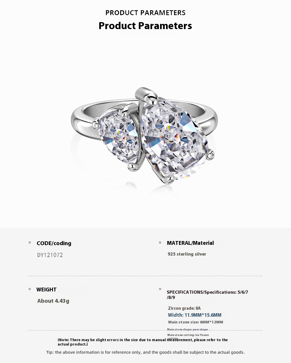 Elevate your style with this exquisite S925 Sterling Silver White Pear-shaped Water Drop Ring, a true masterpiece of jewelry design. This stunning ring features a brilliantly cut 8A ice flower gemstone, known for its exceptional clarity and sparkle. The pear-shaped water drop design adds a touch of elegance and sophistication, making it a perfect accessory for any occasion.