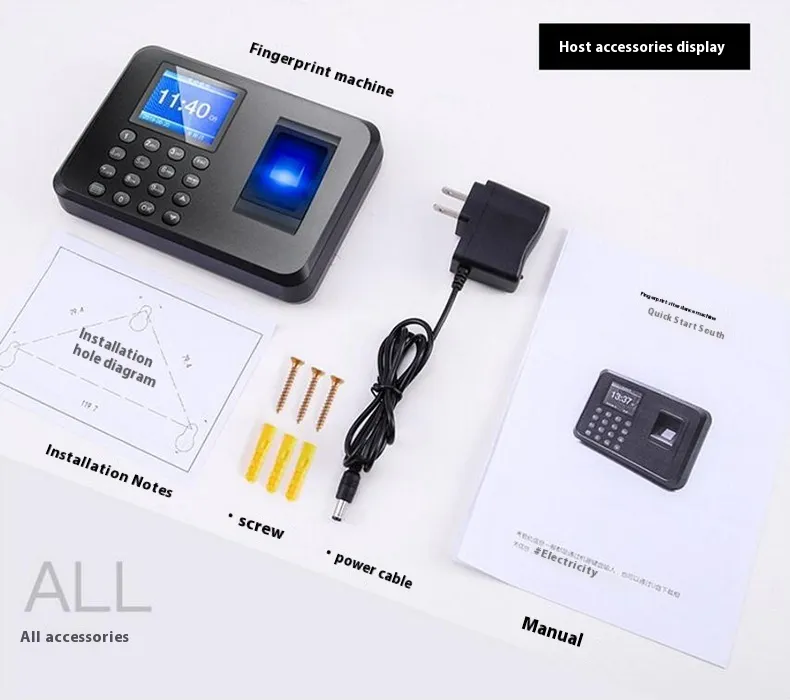 Attendance machine * 1 manual * 1 power cord * 1 screw * 1 set