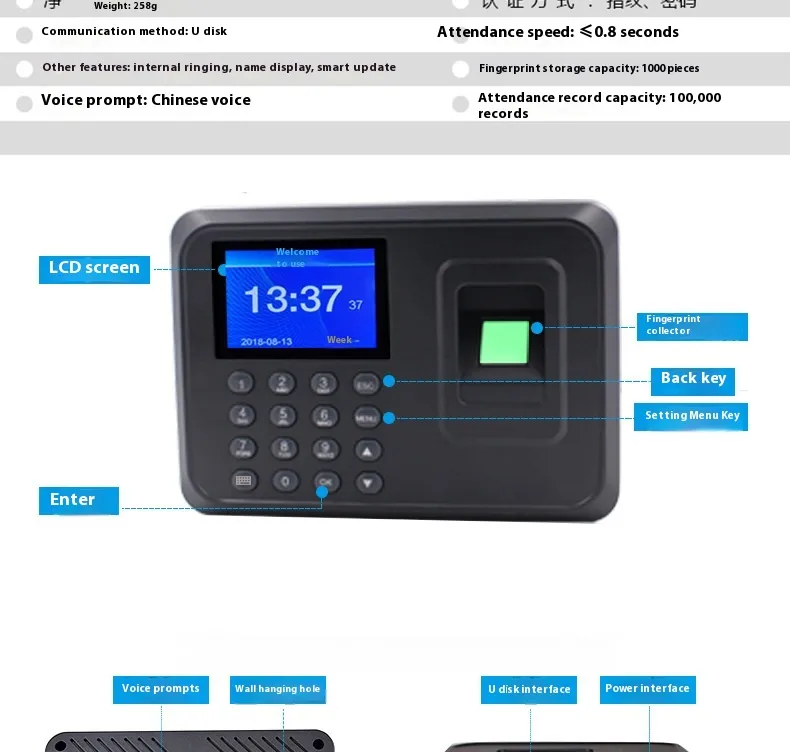 - ✅ Biometric Options – Fingerprint or facial recognition prevents time theft.