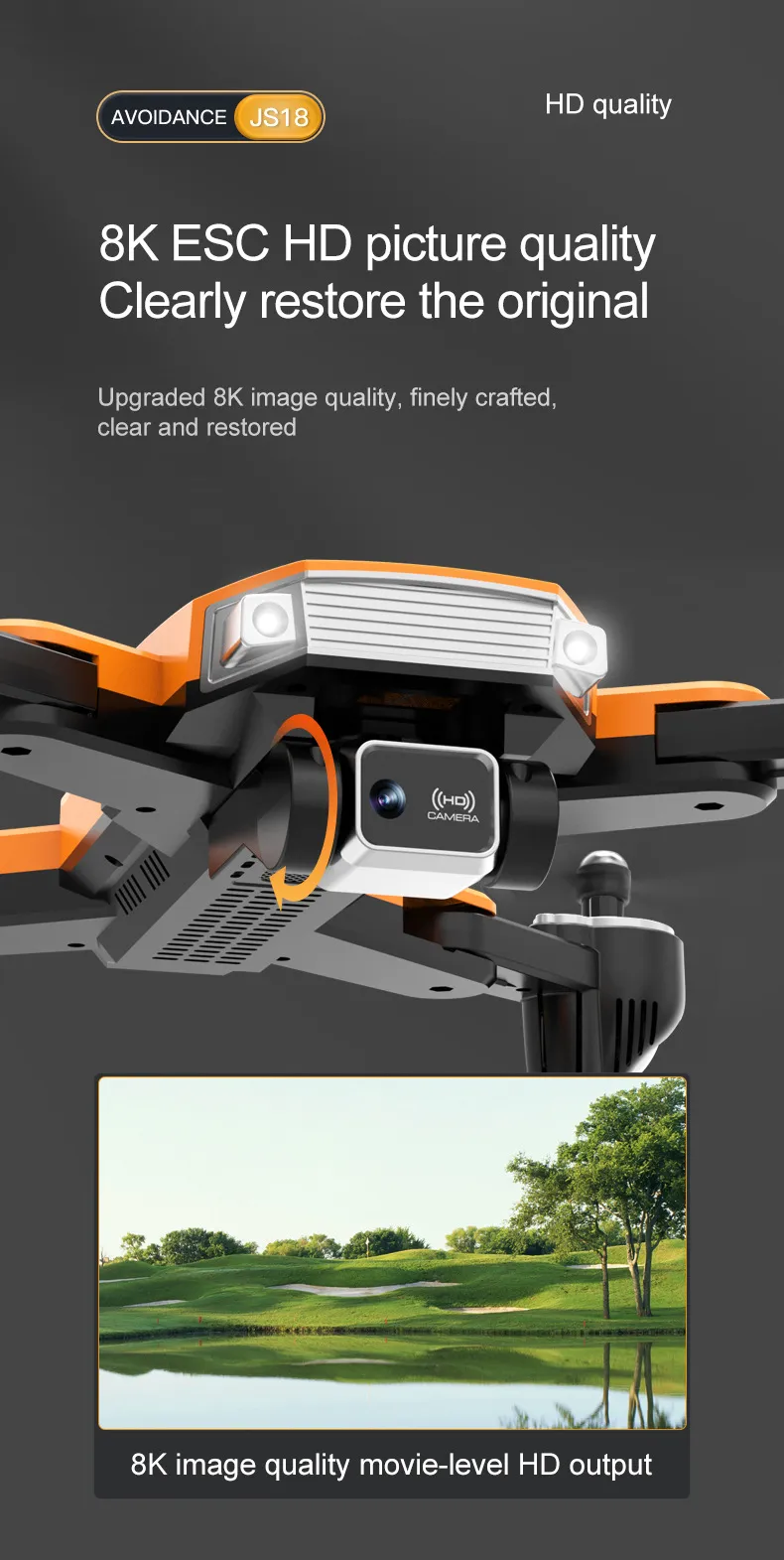 The JS18 drone comes with a built-in HD camera, allowing users to capture crystal-clear images and record high-resolution videos during flight. Whether you’re exploring landscapes, documenting outdoor adventures, or capturing memorable moments, this drone delivers impressive aerial footage from a bird’s-eye view. The camera’s adjustable angle lets you shoot from different perspectives, providing flexibility for dynamic shots and panoramic views.
