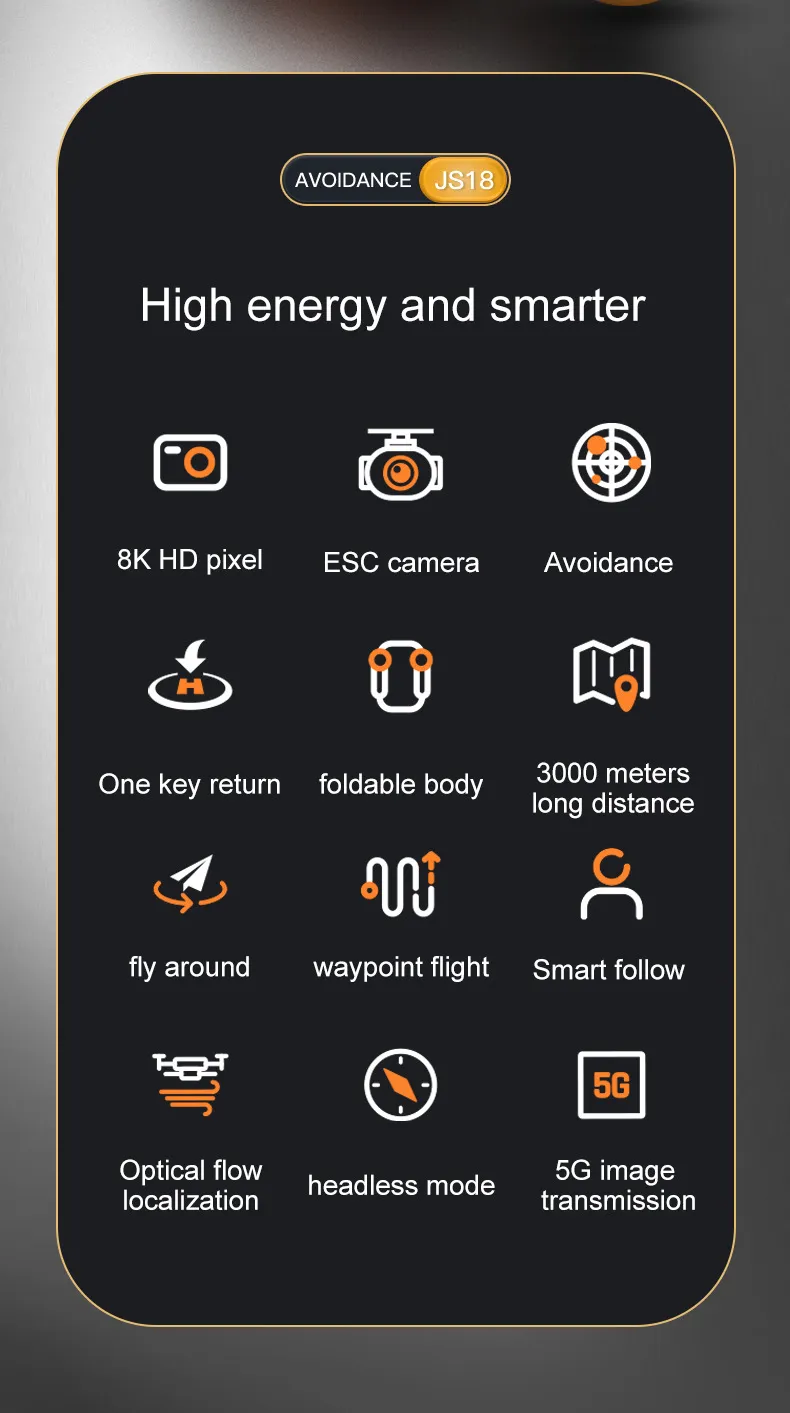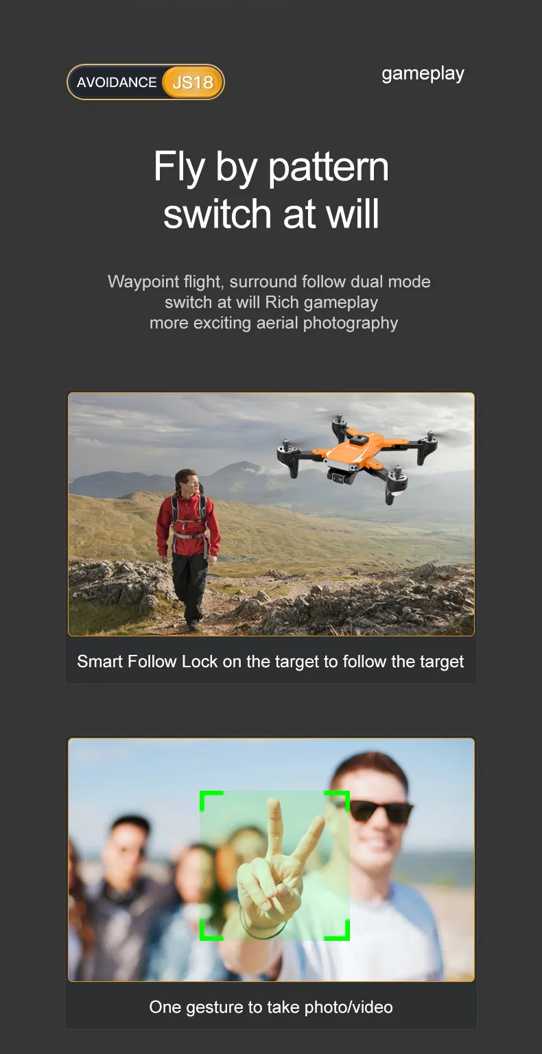 One of the standout features of the JS18 drone is its obstacle avoidance system, which uses advanced sensors to detect and avoid obstacles during flight. This intelligent system allows the drone to automatically navigate around obstacles, minimizing the risk of collisions and providing a safer flying experience—especially for beginners. This technology ensures smoother, worry-free flights even in complex environments like forests, urban areas, or indoor spaces.