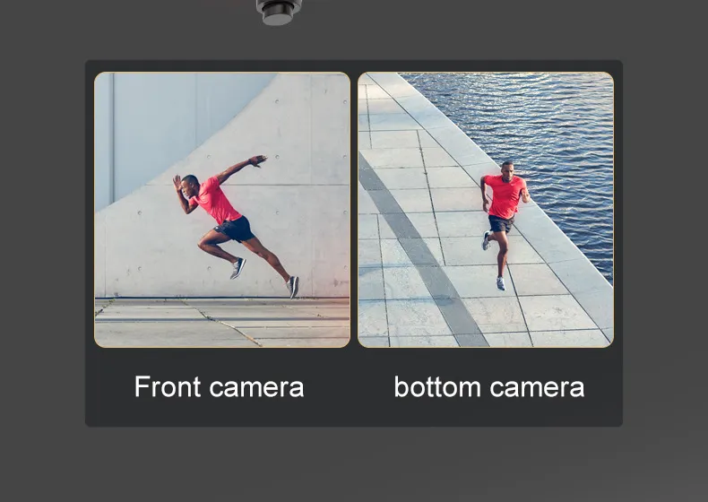 hover, one-button emergency stop, 360-degree roll, high-definition shooting, dual cameras, led