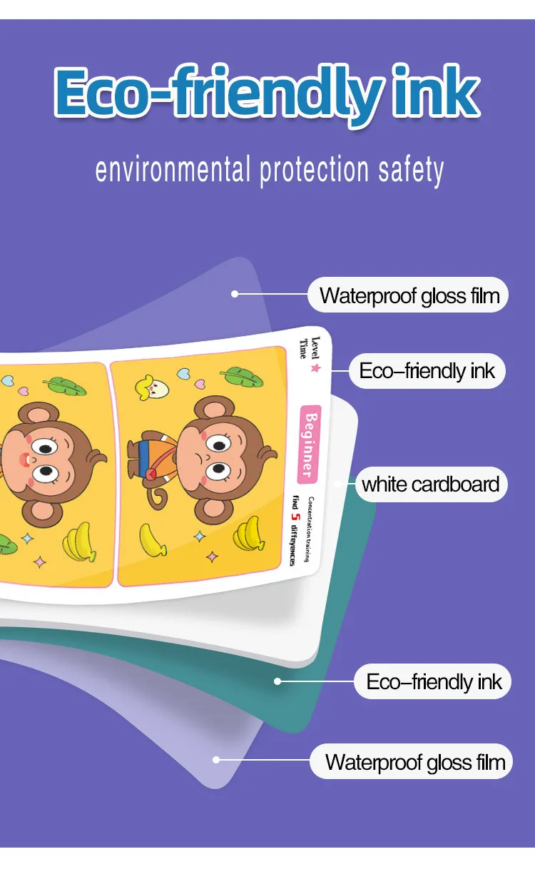 concentration, memory, and cognitive skills. This set of cards features pairs of images with subtle differences that challenge kids to spot
