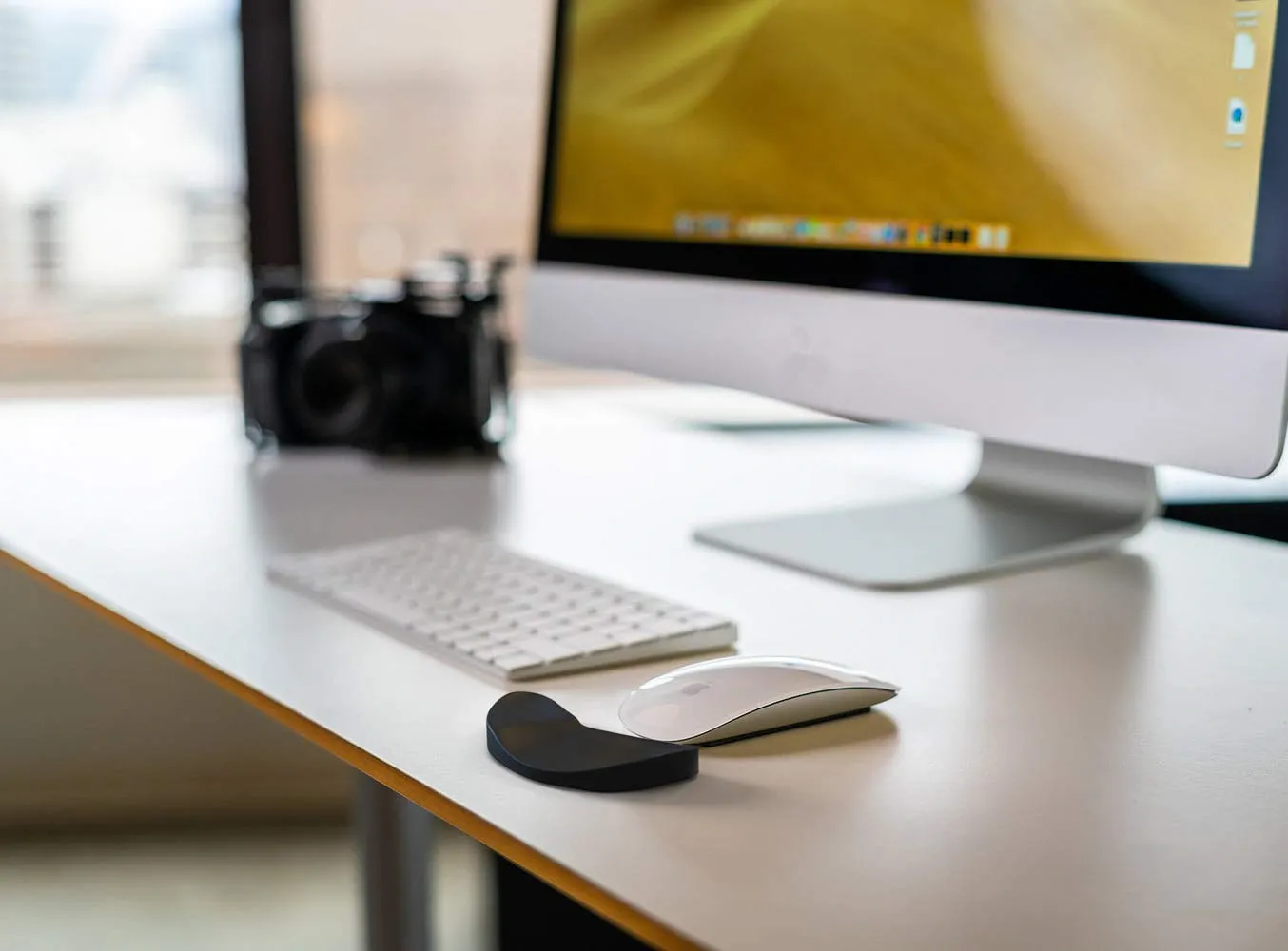 Using the mouse wrist rest alleviates pressure from your wrist by raising your palm half an inch from your table. The sliding function helps