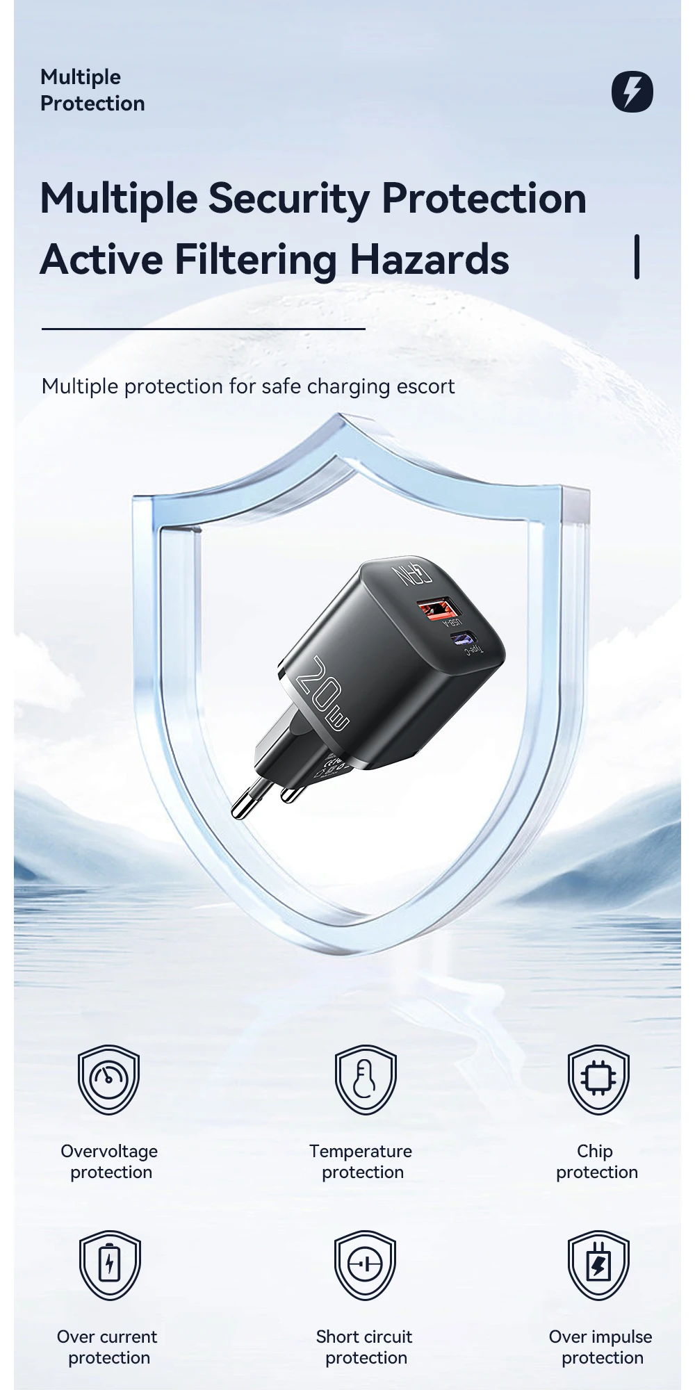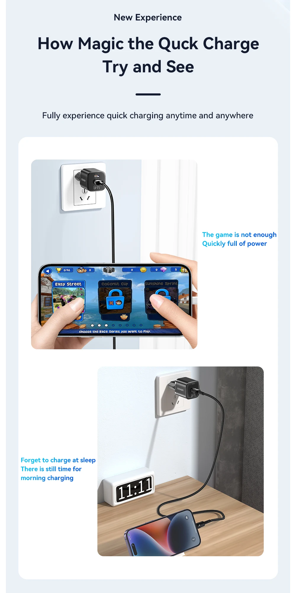The Essager 20W GaN USB Type-C charger supports PD fast charge and QC 3.0 technology, making it perfect for quick charging iPhone 14, 13, 12, 11 Pro Max, Mini, and iPads. The Gallium Nitride technology ensures efficient and reliable power delivery in a compact design.