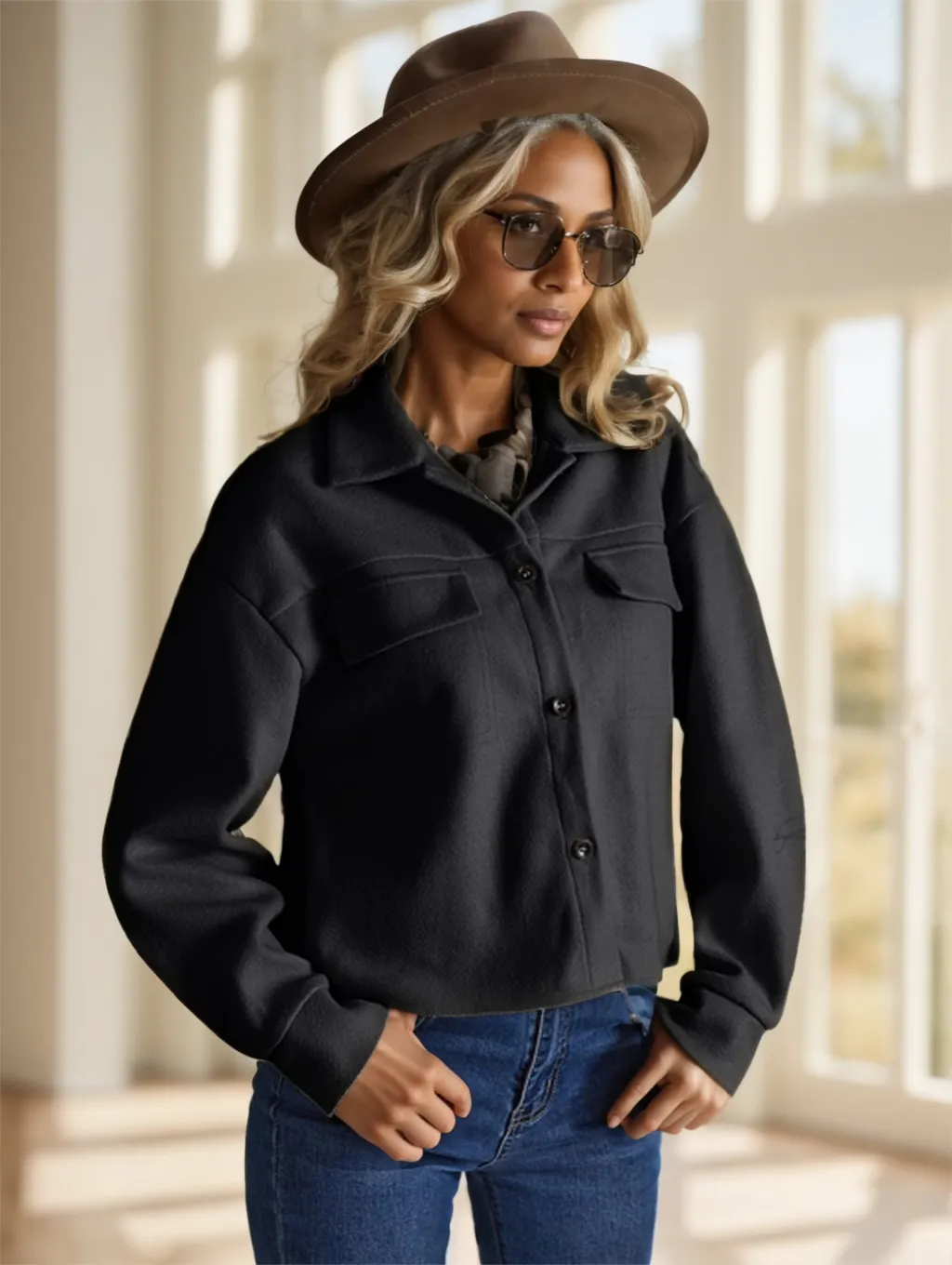 outfits. It complements jeans, trousers, skirts, and dresses, making it a versatile piece for all types of occasions.