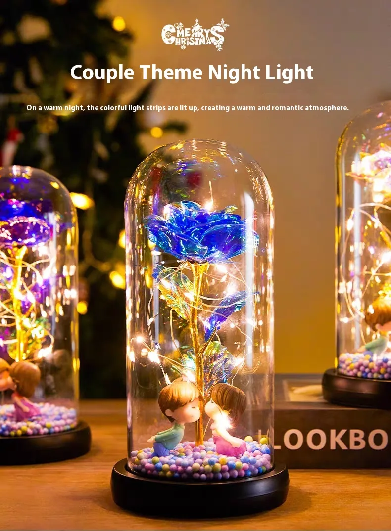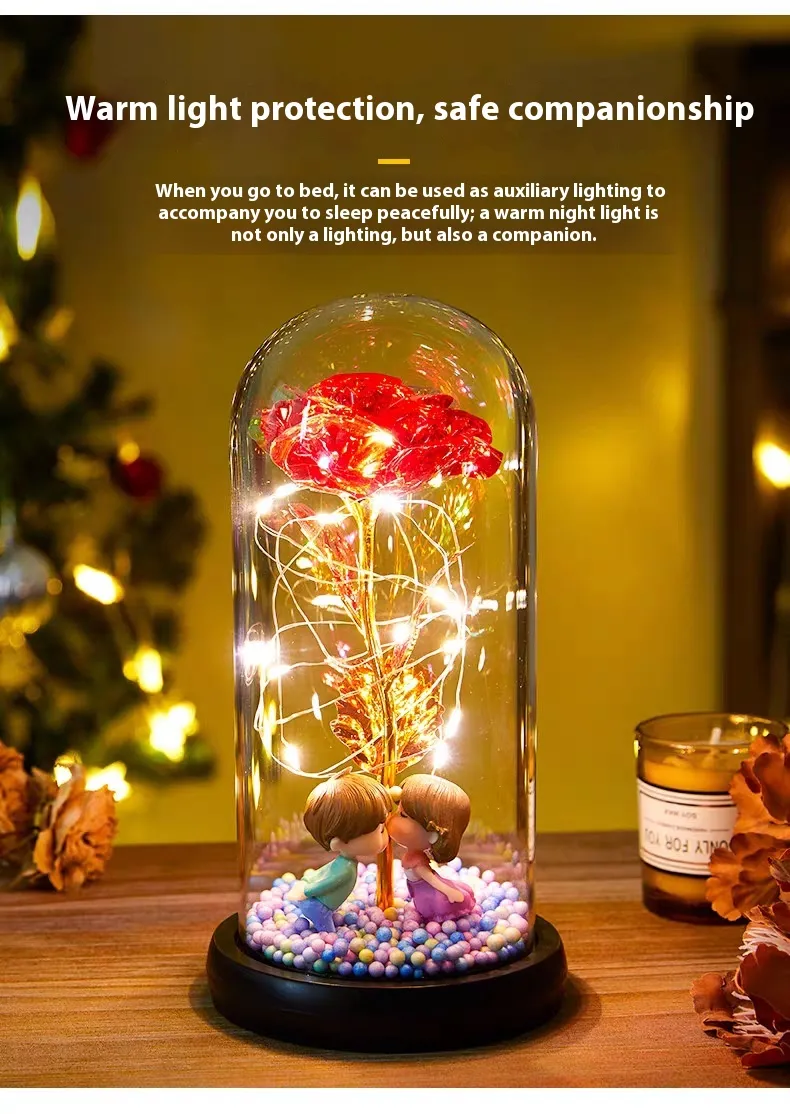 Eternal Rose LED Light Foil Flower In Glass Cover Night Lights Valentines Day Gifts Lamp Decor For For Home Bedroom Wedding Gift Valentine's Day Gifts