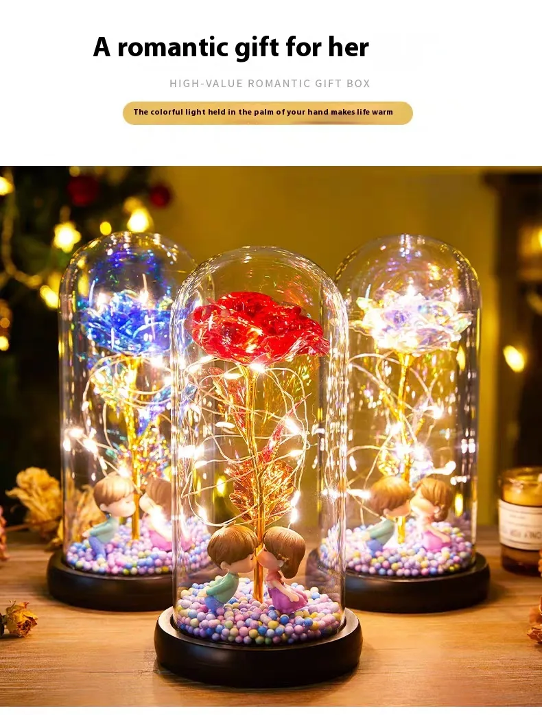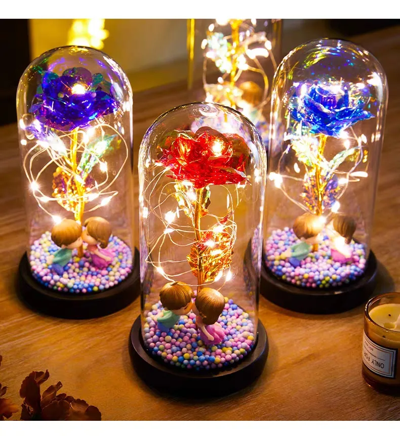 Eternal Rose LED Light Foil Flower in Glass Cover: A Timeless Symbol of Love and Beauty