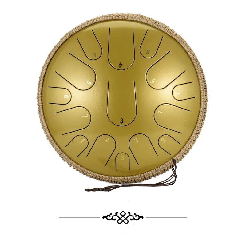 Crafted from carefully tuned metal, the Ethereal Drum features a series of tone fields arranged across its surface. Each field is precisely shaped and tuned to a specific pitch, forming a scale that naturally sounds harmonious. Because of this intentional tuning, it is almost impossible to play a “wrong” note. This makes the instrument especially welcoming for beginners and deeply satisfying for experienced players.
