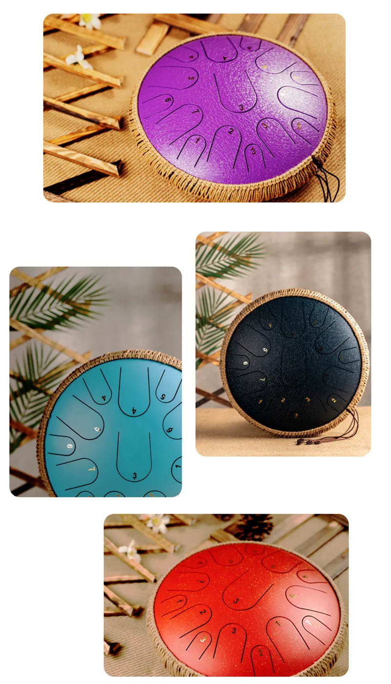 The drum can be played by hand or with mallets, depending on the desired sound and playing style. Hand playing offers a warm, organic feel, while mallets create a more pronounced, bell-like resonance. Both approaches invite exploration and personal expression, allowing the player to adapt the instrument to meditation, performance, relaxation, or creative experimentation.