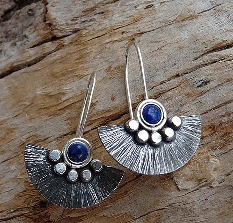 Ethnic Style Retro Semicircle Fan-shaped Metal Alloy Earrings