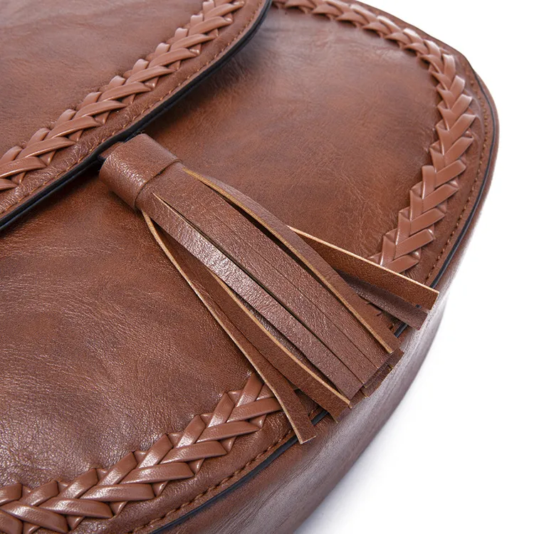 European And American Bags Handmade Weave Vintage Saddle Tassel Bag