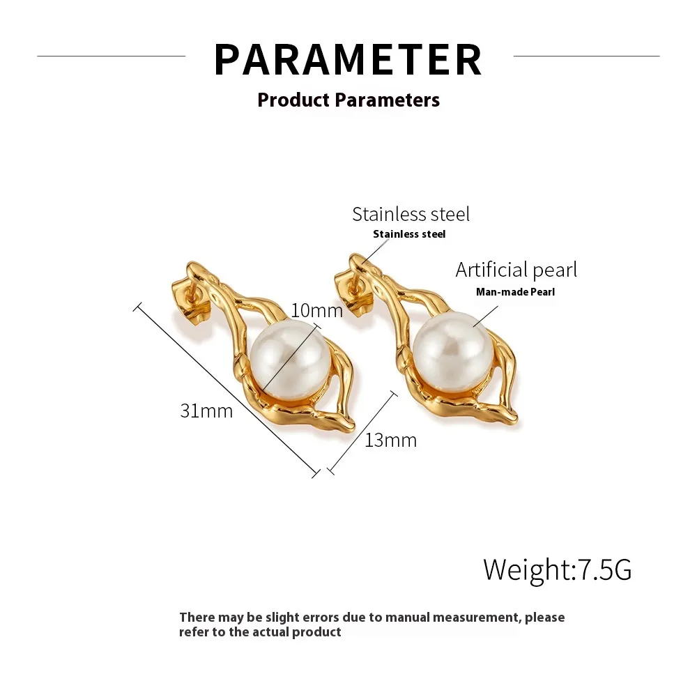 European And American Entry Lux Temperament Earrings Stainless Steel Geometric Pearl