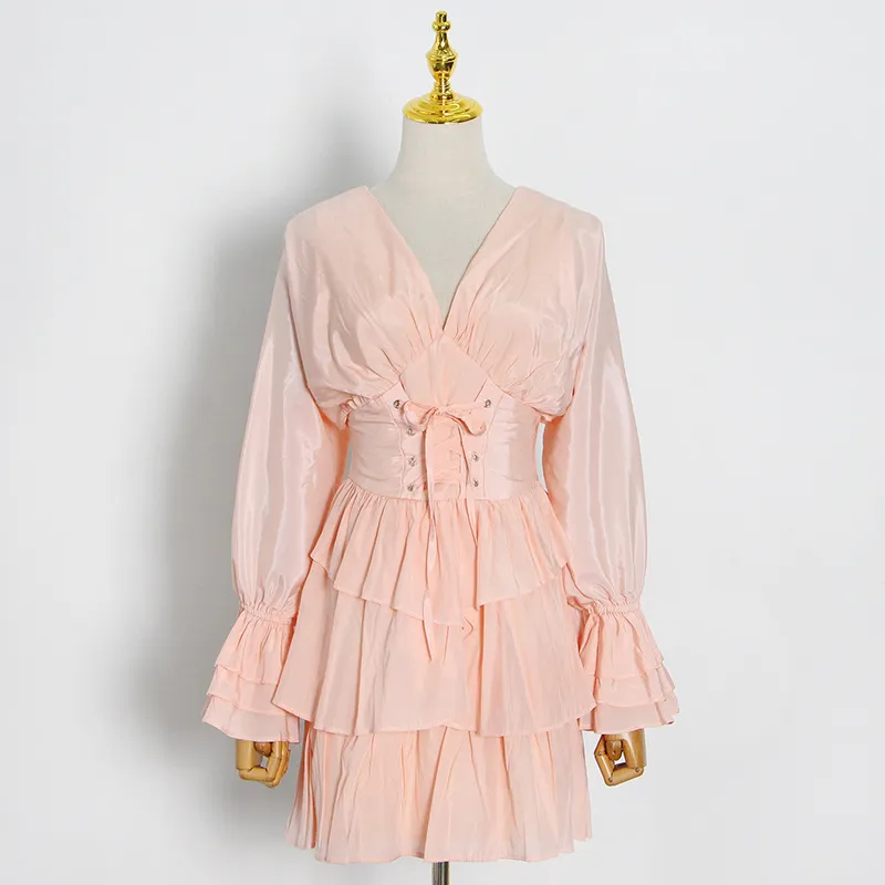 European and American Fashion Sexy Deep V-neck Solid Color Waist Slimming Dress