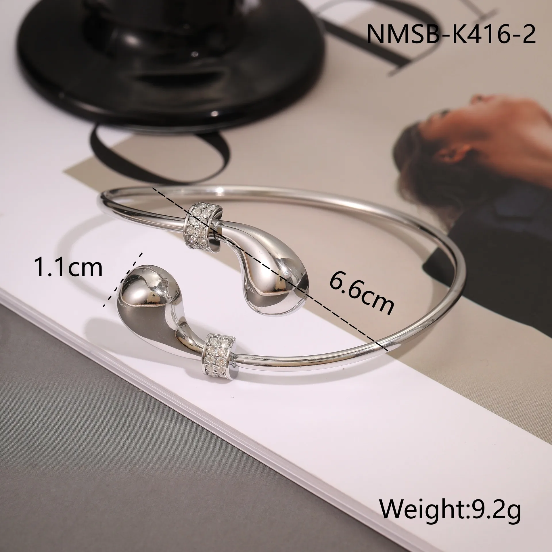 The open bracelet design allows for easy adjustment, fitting most wrist sizes comfortably while offering a stylish, effortless look.