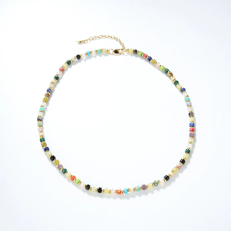 For a more modern, layered look, combine this necklace with other necklaces in varying lengths and styles. The versatility of the European and American Multi Gem Turquoise Shoushan Stone Necklace makes it easy to create a personalized, chic look.
