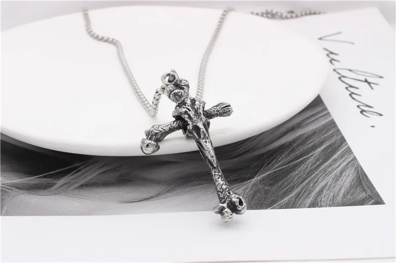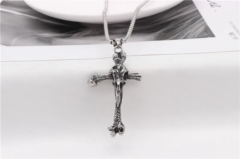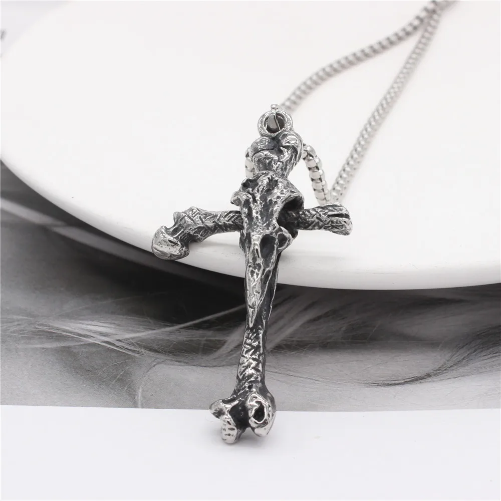 European And American Personalized Vintage Viking Long Pointed Bone Cross Men's Titanium Steel Pendant