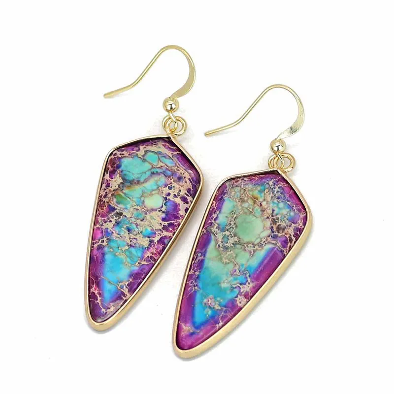 European And American Pointed Edge Blue Angle Gold And Silver Earrings