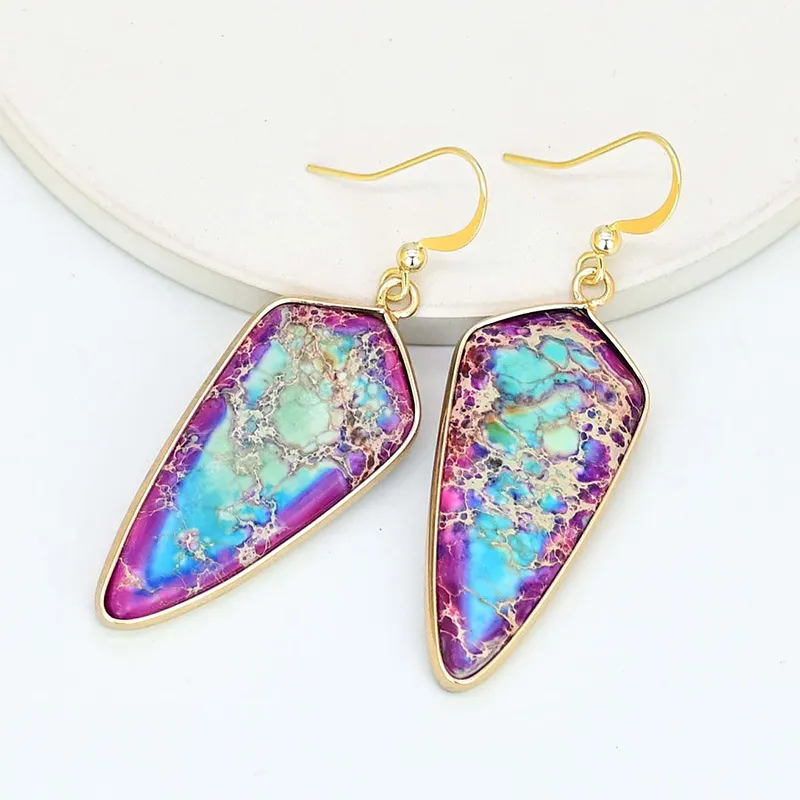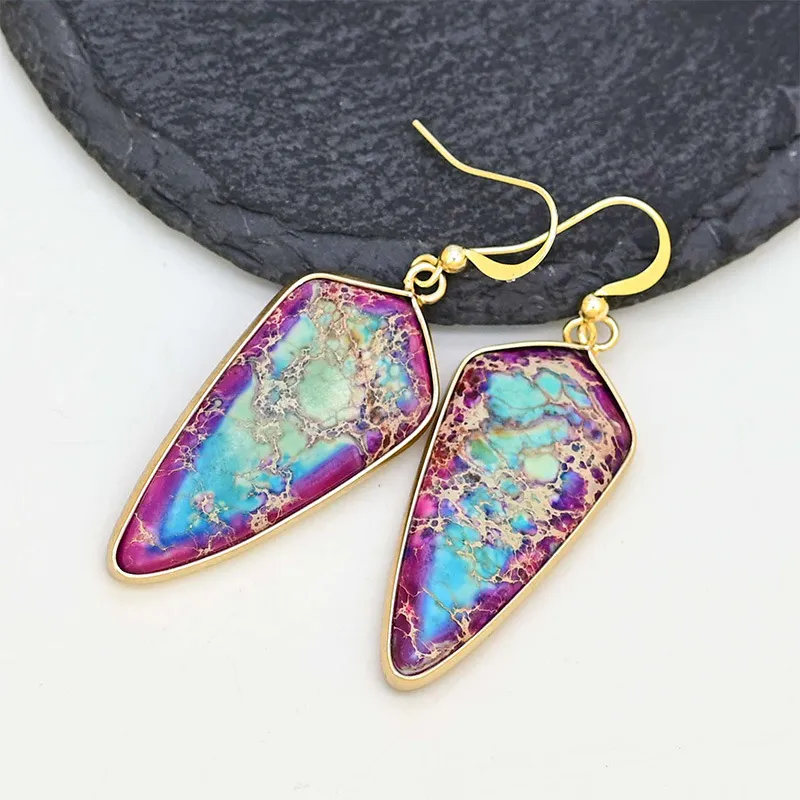 European And American Pointed Edge Blue Angle Gold And Silver Earrings